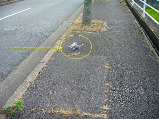 最後に降ろした|落とした場所が、車の来る頻度が少ない車道だったので、事件にならずに済みましたが、危なかった!(左写真)