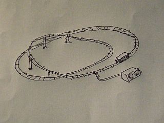 今年は、鉄道模型のレイアウトを新しいのにしたいと思ったので、孫息子のやらせようかと、ポンチ絵だけ描いて渡しておいた。(図1)