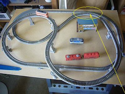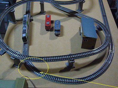 ただ、一箇所、線路同士が近接し過ぎていて、電車が通過し難い箇所があったので、後で私が手を入れた。(図3の矢印箇所)