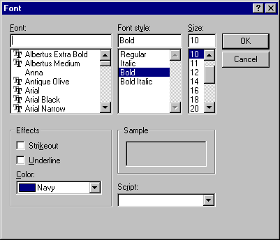 Essbase displays the Font dialog box.
