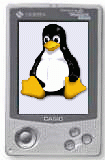 Then I saw the Casio E-100/E-105. This looked promising, it had a substantially faster processor, more memory, a compact flash slot (it can take the IBM microdrive which has been talked about for ages but now seems actually available). It had sound. This looked promising. But, its a Windows CE device. That's not good, getting hardware internals of the machine wont be easy to get a Unix port. I looked for Unix (gcc) based development environments for WinCE ( http://www.innonet.at/~wisi/index.html). It looked possible but not very good. Then later this summer I saw that there was LinuxCE project and that they had made signigicant steps forward (and booting kernel to a single user shell). True, there was not yet any audio support, communciation was through the serial line, and it really wasn't yet a practical solution, but it did have interest and there was a group actually working on it.