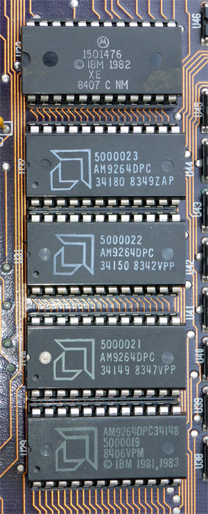 The IBM part number is seven digits long, and printed on top of each BASIC ROM chip.