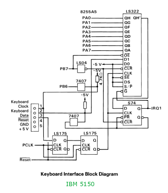 | • | The 5150 motherboard does not have a keyboard controller chip. Instead, it uses discrete components - see here. |