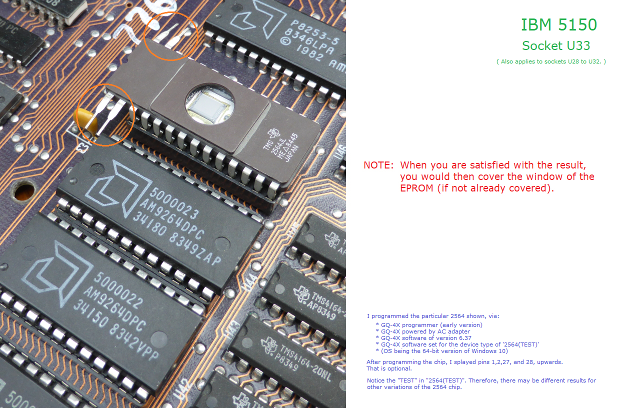 IBM 5150  -  Substituting the U33 BIOS ROM