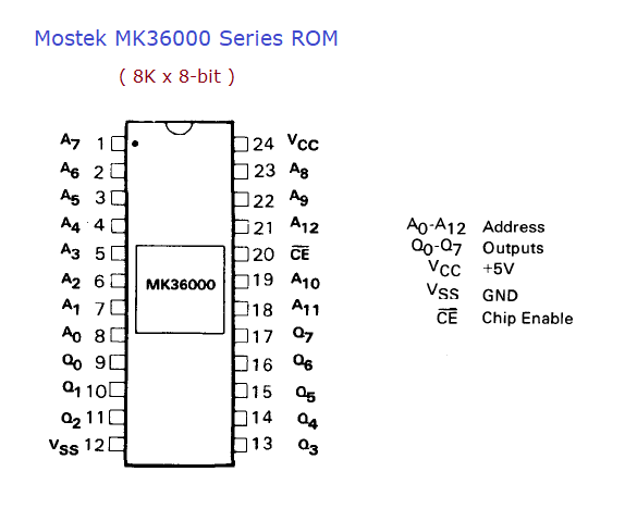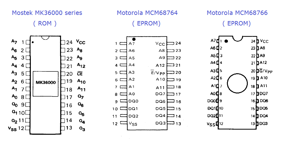 - Mostek MK36000 series.  Mostek custom-programmed these for companies.  The numbers after the '36' indicate which code is in the ROM.