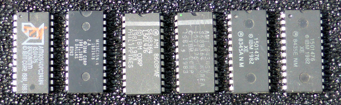 In the supply lifetime of the IBM 5150, IBM used varying make-model of ROM for the BIOS ROM.  Some are shown at here.