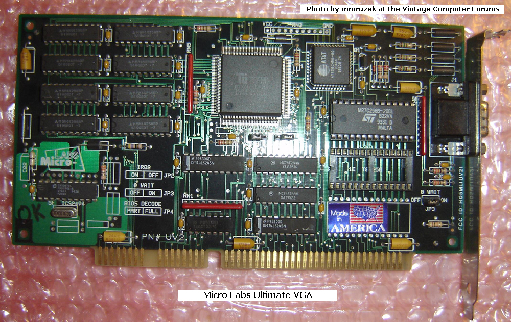 | Note 2 | I have one of these cards. The VGA-16 user's guide indicates 5150 (IBM PC) compatibility, and indicates how to force the card into 8-bit operation. But whilst I can get my card to operate in a 16-bit slot, I have been unable to get my card to operate in 8-bit mode (fitted to a 5150/5160/5170). Maybe my card is faulty. Also, I have noted that the user's guide indicates an FCC ID of D2A62LTJWBJC, whereas my card has the FCC ID of D2A62LVGA16. Maybe I have a later version of the card, in which 8-bit operation was dropped! |