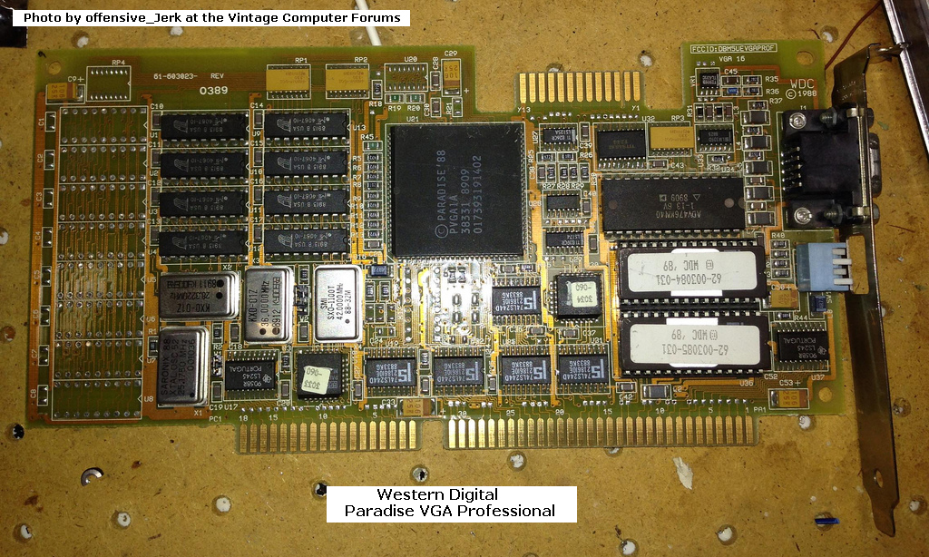 | Note 3 | Model based on the fact that Western Digital released a card known as the 'Paradise VGA Professional', and the FCC ID of the subject card. |