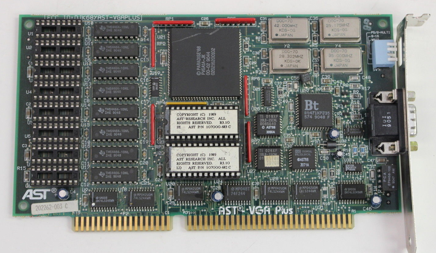 | Note 4 | Model based on the fact that Western Digital (WD) released a card known as the 'Paradise VGA Plus 16', and printed on the subject card is 'PVGA PLUS-16'. Possibly a non-WD copy, because: 1. No FCC ID, and 2. BIOS stickers do not look to me like the kind of thing that WD would use. |