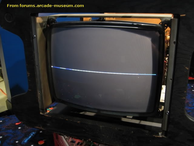 Replace C311 (100 uf 40v) near vertical amplifier (IC300).