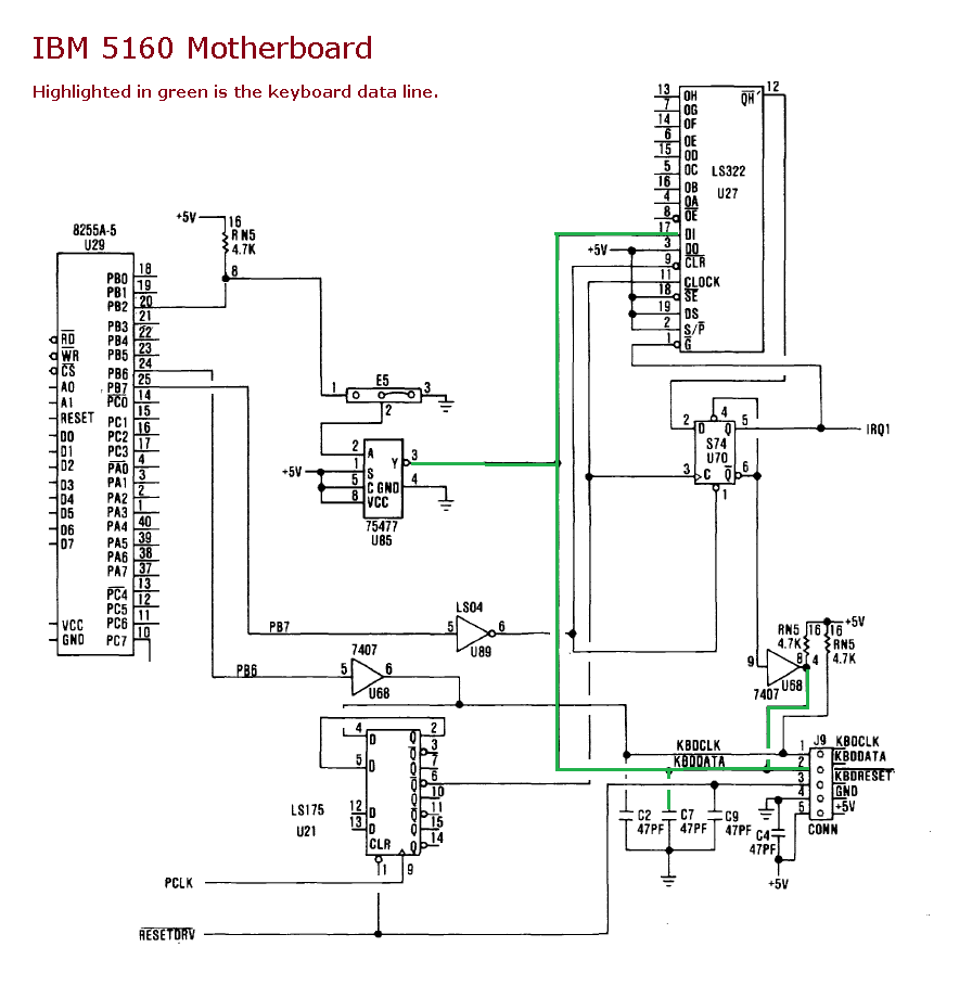 Note 4 The motherboard's POST uses PB6 to momentarily pull the keyboard clock line to LOW, to signal to the keyboard that the keyboard is to do a self-test.