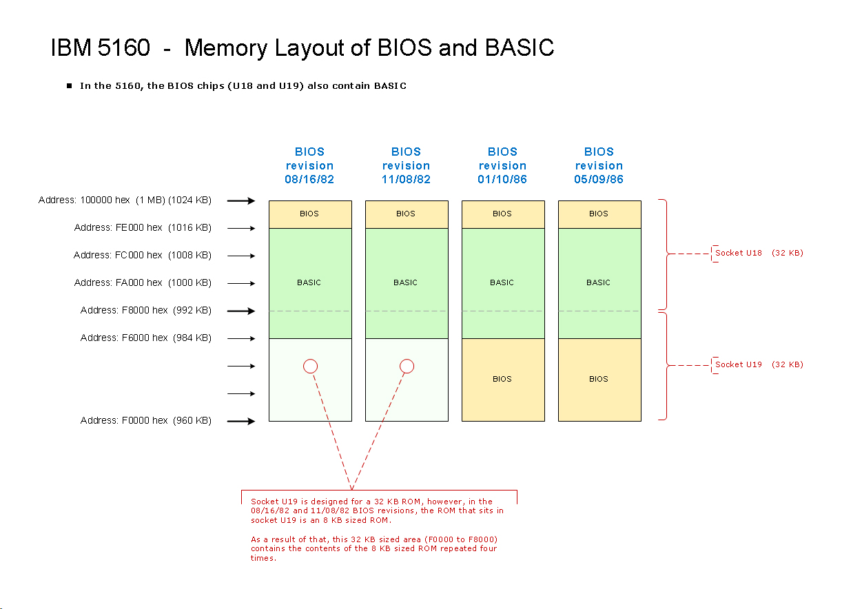 | IMPORTANT: | The following is specific to the IBM 5160 (IBM XT), fitted with IBM BIOS ROM's. |