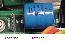 Jumper placed in one position for 'internal', and placed in the other position for 'external'.