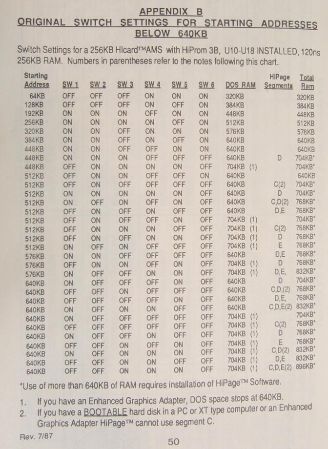 | EGA Wonder 800 - Switch settings | (EGA video card for PC and XT and AT) | |