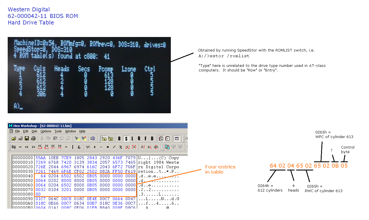 In the examples of this card that I have heard of, the BIOS ROM has been customised - Western Digital produced a customised ROM for a computer maker (or perhaps the computer maker did the customision themselves). Specifically, the customisation is the hard drive table within the BIOS. The implication of this is that, if you acquire one of these cards, the drive table shown in Internet sourced documention, may not match your card's drive table.
