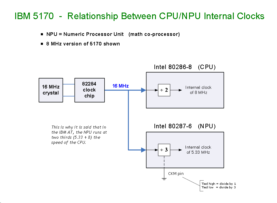 In the 8 MHz version of the IBM 5170, any 80287 fitted needs to be rated at 6 MHz, or faster (because the motherboard runs the 80287 at 5.33 MHz.)  [diagram]