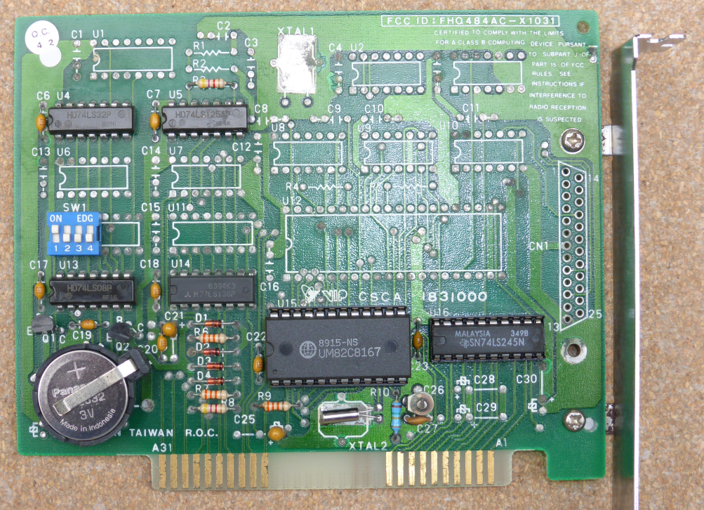 | RTC hardware | - A UM82C8167 chip (source: what is fitted to the card) - Chip sits at the base I/O port of either 240 hex or 340 hex as configured by the card's switches 1 and 2 (source: user's manual) |