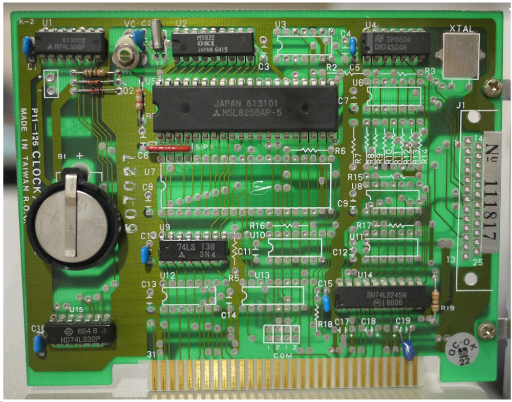 | Note | ADJCLK.COM - Use to set the clock on both card (RTC) and DOS. DSPCLK.COM - Show the card's clock (RTC). SYSCLK.COM - Set DOS' clock from the card's clock (RTC). Normally executed via AUTOEXEC.BAT HLPCLK.COM - Shows date and time format info. |