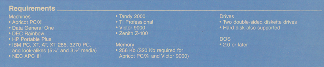| WordPerfect 4.2 - requirements | |