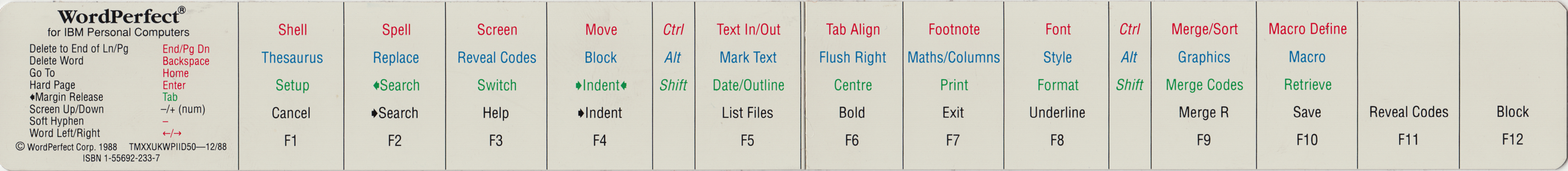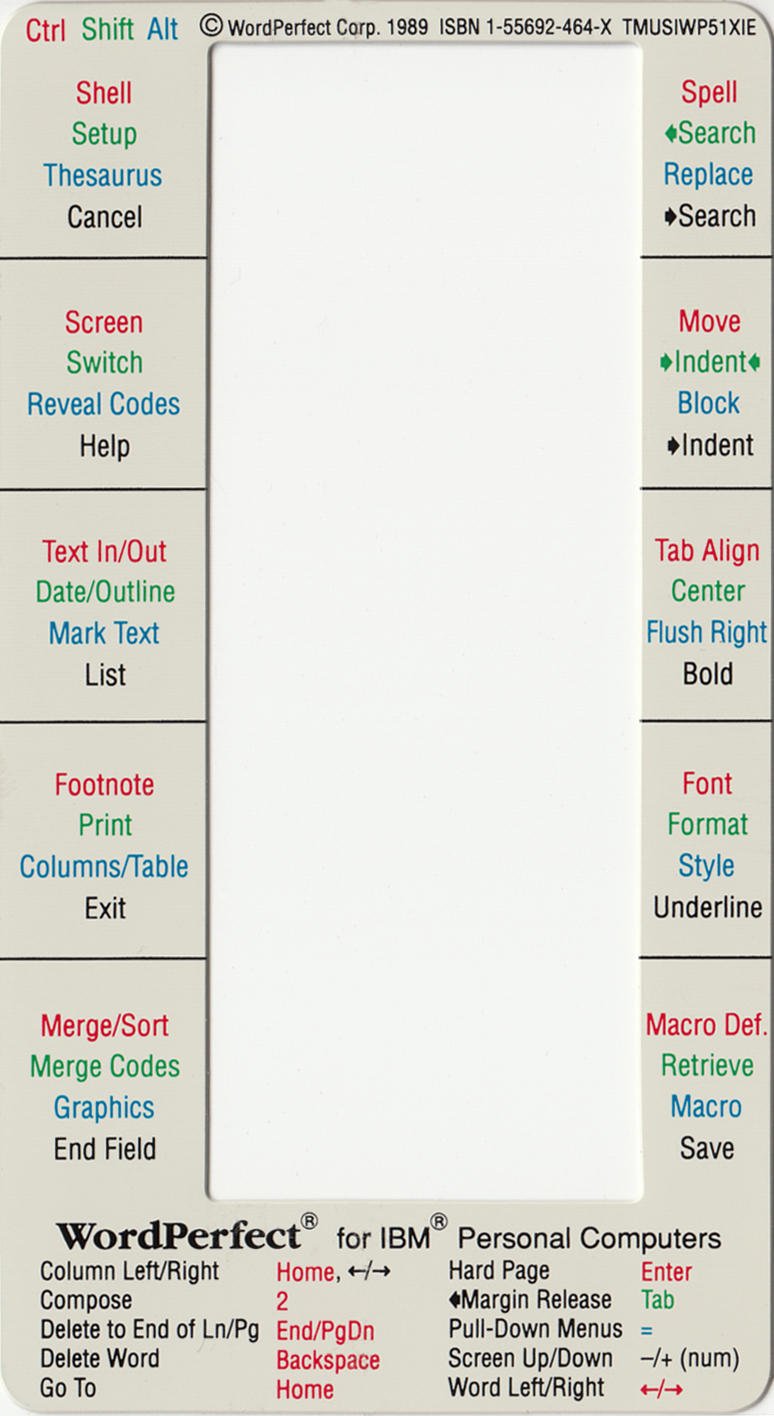 | WordPerfect 4.2 - keyboard template - top | (1987) |