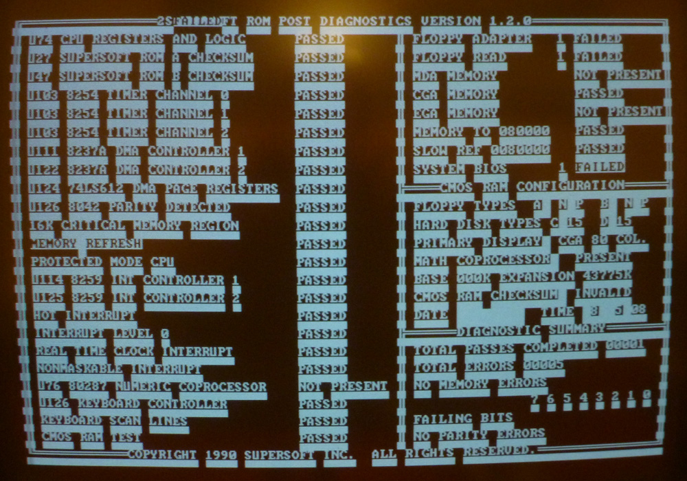 | Partial failure - TEST0 receiver (used for keyboard clock) |