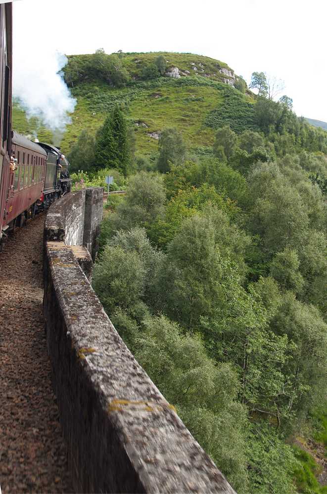 A view of the famous Glenfinnan concrete viaduct on the line north of Fort William to Mallaig.