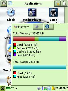 Taskbar Applet displaying current memory usage. Also allows to manage swapfile.