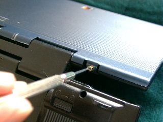 まず、画面側の筐体のヒンジ近くにある、2本のネジをはずす必要があります。