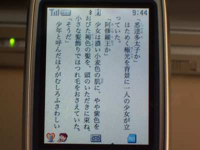 今時のケータイのハードウェアはQVGAフルカラー液晶が当然のようになっていますけれど、それを真に活かす電子書籍閲覧ソフトがなかったのだと思い知ります。T-Tim5.5による表示は衝撃的な美しさです。
