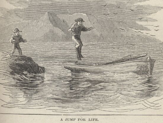 But things cannot last always. Just as the darkness shut down we came booming into port, head on. Higbie dropped his oars to hurrah—I dropped mine to help—the sea gave the boat a twist, and over she went!