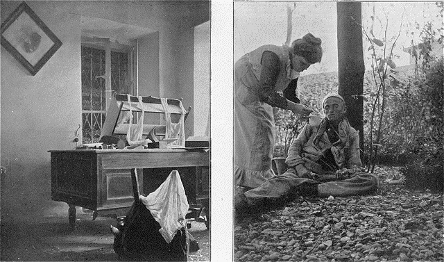 Depuis lors, la tournée de M. Silvain en Algérie et en Tunisie s'est poursuivie sans encombre. C'est de Guelma que nous arrive aujourd'hui l'écho de ses succès. Il y a représenté, le 1er mai, sur la scène du théâtre romain de Calama, une oeuvre dont il est l'auteur, en collaboration avec M. Jaubert, l'Andromaque d'Euripide, traduite et adaptée par leurs soins. L'éclat de l'interprétation, en tête de laquelle figurait, aux côtés de M. Silvain dans le rôle du vieux Pelée, Mme Louise Silvain en Andromaque, la nouveauté de la pièce, non encore donnée en public, avaient attiré de nombreux spectateurs, qui firent fête aux deux artistes et à leur troupe. Une de nos photographies montre une scène de la pièce, dans un décor adroitement reconstitué, où l'on voit, à gauche, le palais de Néoptolème et à droite le temple de Thétis, à Phtie, en Thessalie.