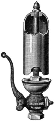 Below the lower gauge cock there is another cock used for draining the gauge and blowing it off when there is a pressure of steam on. By occasionally opening this cock, allowing the heated water or steam to blow through it, the engineer may always be sure that the passages into the water gauge are not stopped up by any means. By closing the upper cock and opening the lower, the passage into the lower may be cleared by blowing off the drain cock; by closing the lower gauge cock and opening the upper the passage from the steam space may be cleared and tested in the same way when the drain cock is opened. If the glass breaks, both upper and lower gauge cocks should be closed instantly.