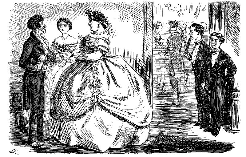 Hideous Old Lady of Fashion (with Plain Daughter). "CHARMING BALL AT SIR CHARLES'S LAST NIGHT! EVERYBODY THERE—GOOD ROOMS, NOT OVER-CROWDED—CAPITAL SUPPER! DEAREST BARBARA ENJOYED HERSELF PRODIGIOUSLY! I DON'T SEE, HOWEVER, HOW I CAN WELL AVOID ASKING HIS SISTER AND NIECE TO MY BALL, NEXT WEEK, HE IS SO FOND OF THEM; AND YET YOU KNOW THAT THEY ARE PEOPLE WHO DO NOT GO OUT NEARLY AS MUCH AS WE DO, AND ARE NOT AT ALL IN OUR POSITION IN SOCIETY!"
