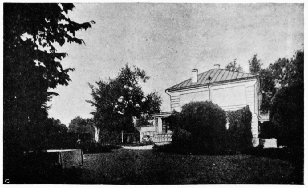 The house itself is a plain white rectangular two-storied building of stuccoed brick, and it would be hard to imagine a simpler and less pretentious place than the home in which Tolstoy has spent the greater part of his life. It boasts neither piazzas nor towers; indeed, no architectural ornaments of any kind, nor are vines or other creepers trained upon the flat walls to relieve their striking whiteness or soften their rectangular outlines. The house was not completed all at once, but was enlarged in proportion to the needs of the family. On one side, devoid of windows, there is a low porch, near which stands an old elm tree, called “The Tree of the Poor.” Close to its trunk is{38} a bench on which the peasants sit to await the coming of Count Tolstoy. Here he listens with unwearying patience to many stories of distress and difficulty, and gives in return, not only sympathy and advice, but such material assistance as may lie at his command.